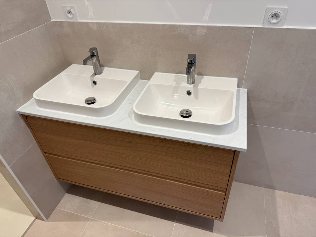 En seulement cinq jours (temps de travail total), notre équipe a su créé une salle d’eau élégante et agréable à vivre. Le chantier s’est déroulé dans le respect des délais et des exigences du client, avec un souci constant du détail et de la qualité. Chaque étape a été menée avec soin, garantissant un résultat durable, pratique et esthétique.