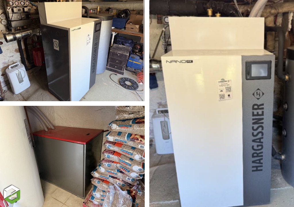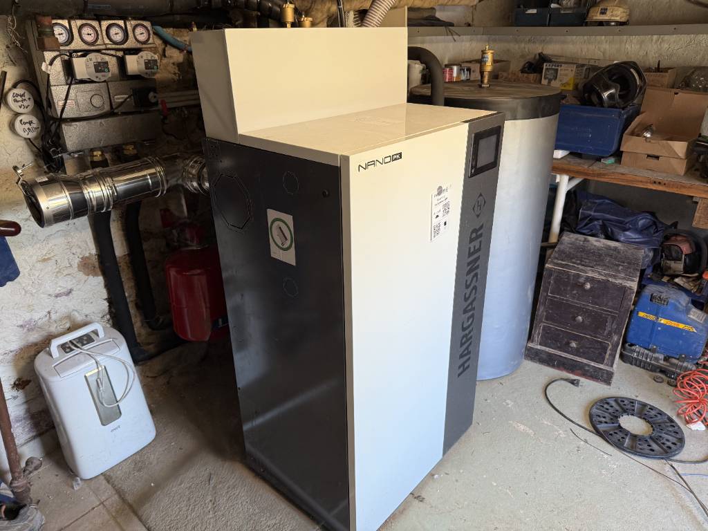 Notre équipe (qualification RGE Qualibois) à installé un système de chauffage biomasse haut rendement dans une maison individuelle des années 60. La chaudière à granulés Hargassner garantit une production fiable et économique de chauffage et d’eau chaude sanitaire, idéale pour améliorer la performance énergétique du logement.