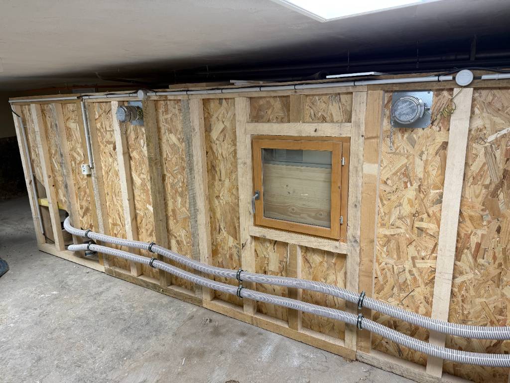 Nous avons conçu et installé un silo à granulés de bois sur mesure d’une capacité de 6 tonnes, destiné à l’alimentation automatique d’une chaudière à granulés.
