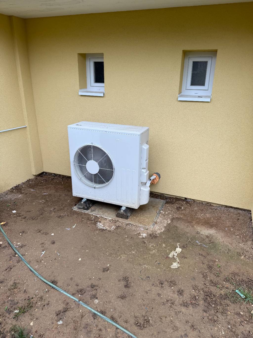 Installation d’une pompe à chaleur air/eau De Dietrich – Chauffage et eau chaude sanitaire, dans une villa des année 70 à Villefranche-sur-Saône dans le Rhône (69).