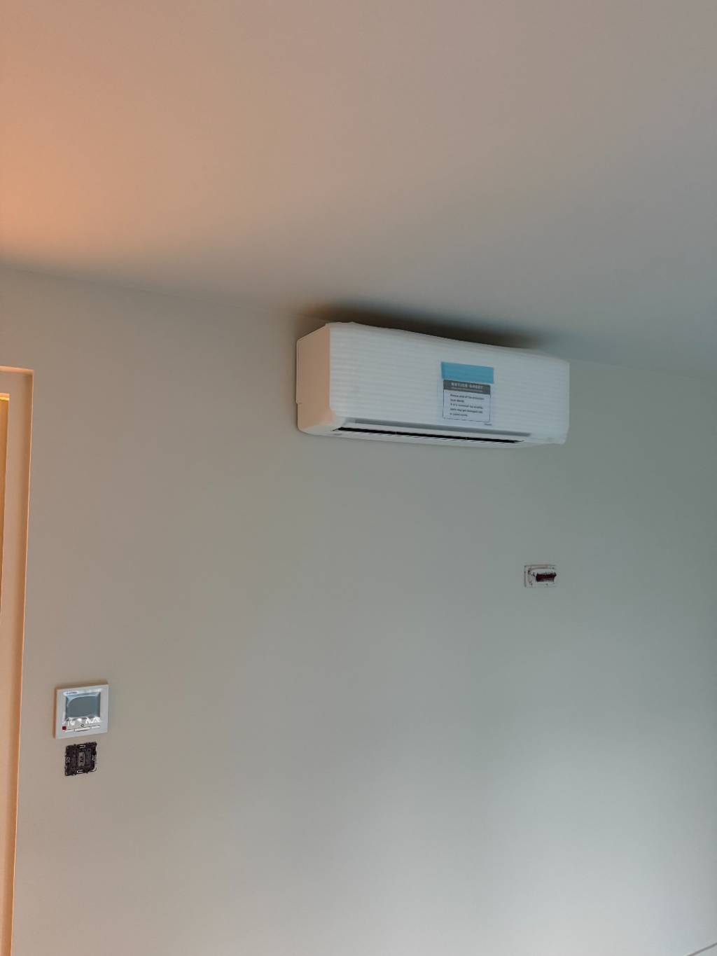 Chaque pièce possède son unité intérieure murale et son thermostat.